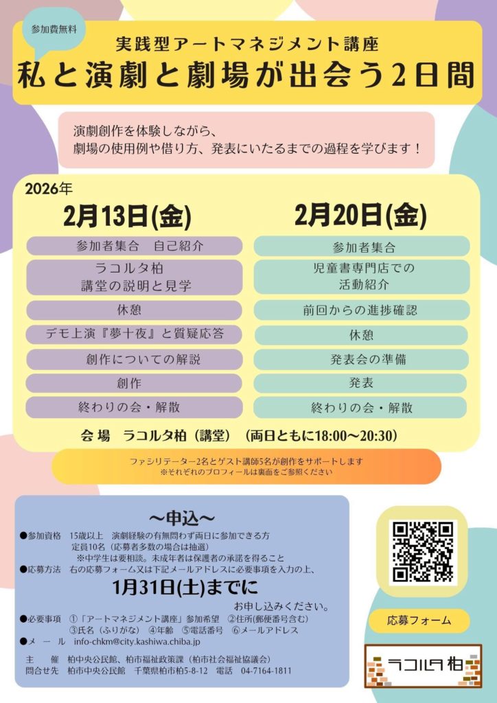 - 2/13、20(金)実践型アートマネジメント講座(柏)